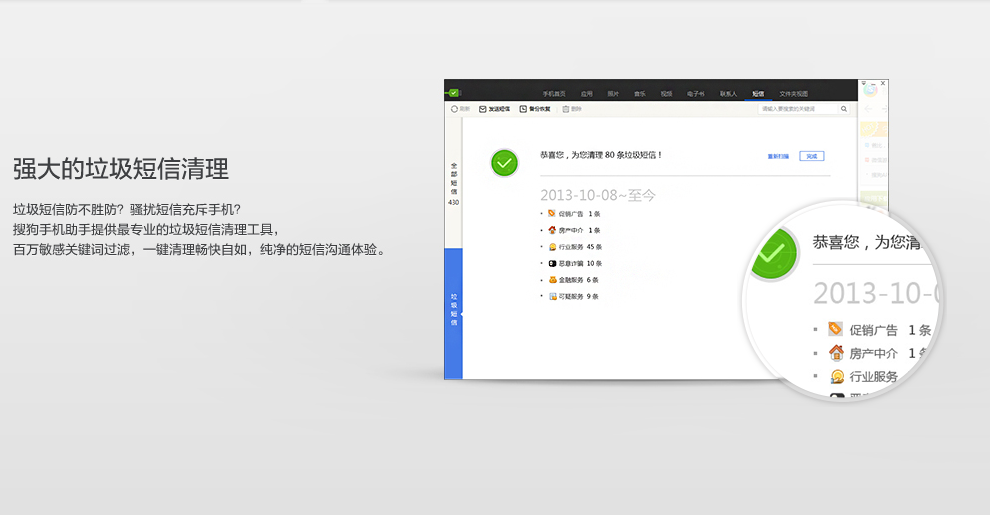 搜狗手机助手提供最专业的垃圾短信清理工具,