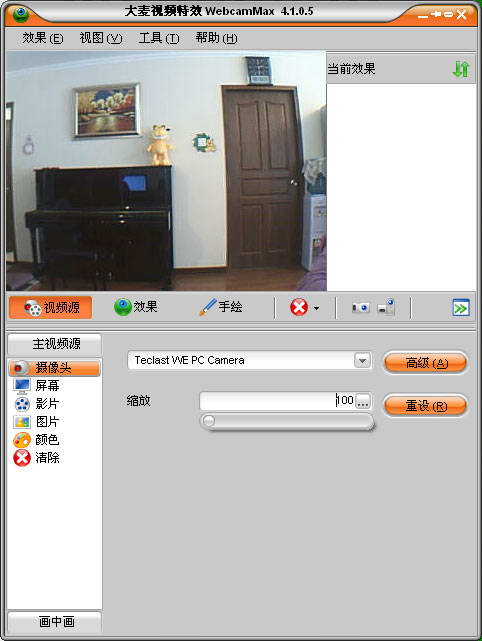 为网络摄像头添加视频、电影、Flash、屏幕、图片以及浮动的文字等等。