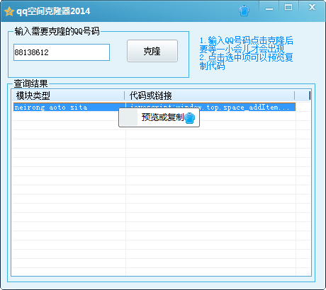 1、输入需要克隆的QQ号码,点击克隆按钮后,要等一会儿才会出现