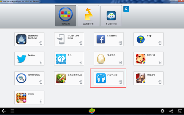 第四步:成功后,打开安卓模拟器BlueStacks,如下图中所示,点图标,就可以电脑上运行《沪江听力酷》这款软件啦!