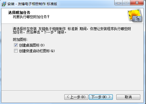 友锋电子相册制作软件标准版安装向导界面,单击下一步,继续安装。