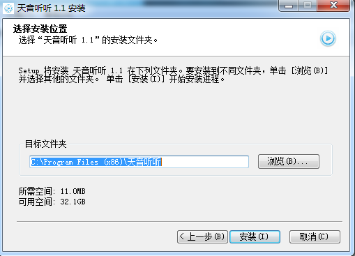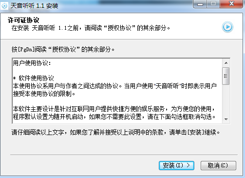 天音听听1.1安装许可证协议,点击安装进入下一步。