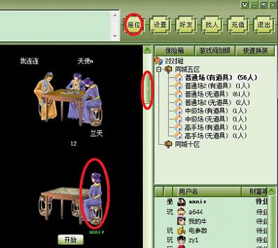 进入游戏房间后,您可以拖动右边滚动条自己寻找空位置,点击座位进入;或点击右上角的“座位”快捷寻找游戏桌。