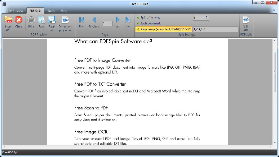 如果你有一个多页的PDF文档,需要重组页面,免费的PDF分割任务。免费的PDF分裂是一个方便的程序,可以帮助您解决分裂一个多页的PDF文件的问题,一些小PDF文件。是理想的大发票,报告和工资单系统,一个输出文件可能包含成千上万的个人记录,需要提取和分布式。文本文档中提取可用于动态输出文件的名字和一个分隔文件数据存储。