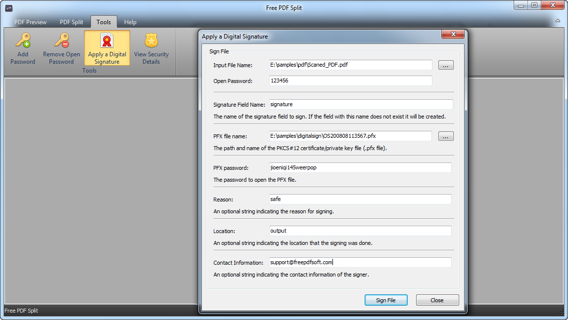 免费PDF分裂有能力添加密码的PDF文件,这样你可以限制谁可以查看、编辑、复制、打印或将评论添加到您的PDF文档。你可以删除密码打开PDF文件修改,打印或复制了文件。数字签名工具可以帮助您将数字签名应用于关键业务PDF文档识别和身份验证信息的发起者或确认信息没有改变后签署。