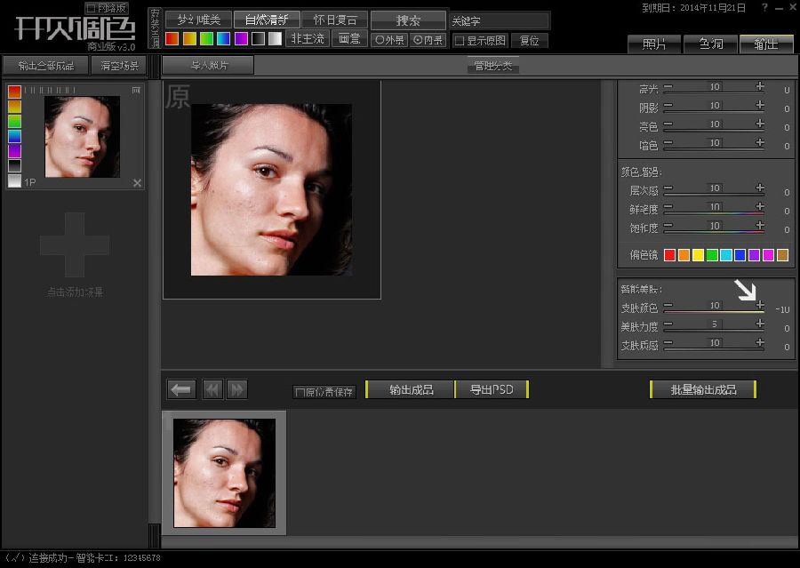 开贝调色软件搭载世界顶级智能美肤引擎,在尽量不伤背景和发丝的前提下快速美化皮肤。