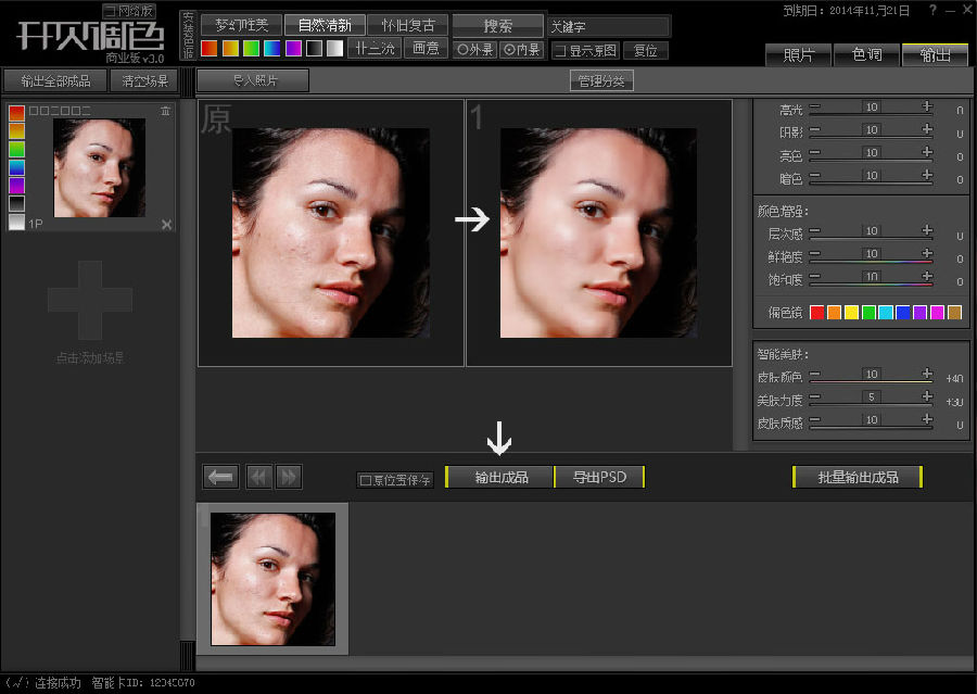 分析,自动调整照片的颜色、色阶、对比度、亮度等信息,对照片进行高速自动校色。