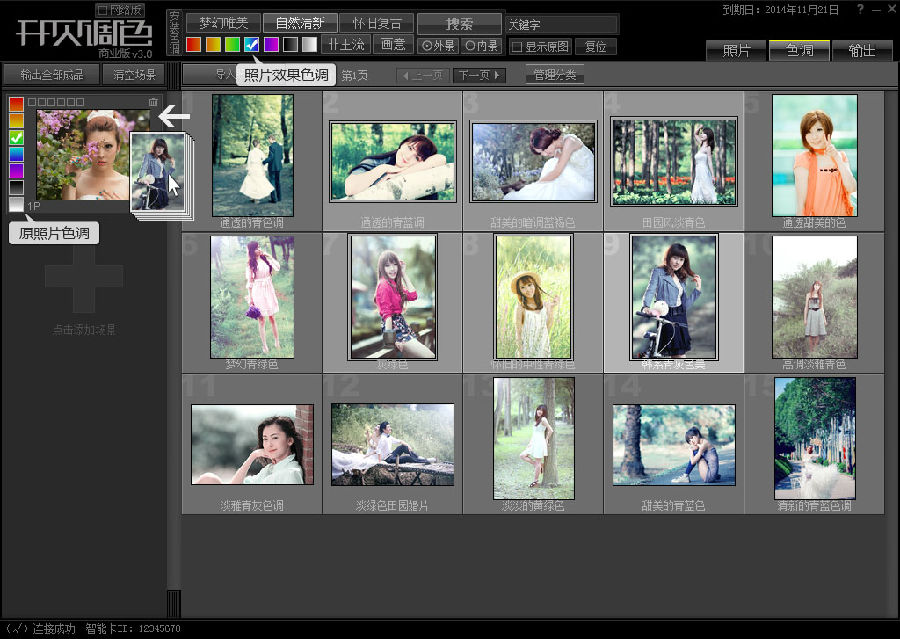 开贝调色软件自带数百种调色效果库,配合校色和美肤,快速调出专业的影楼照片效果,一步到位。