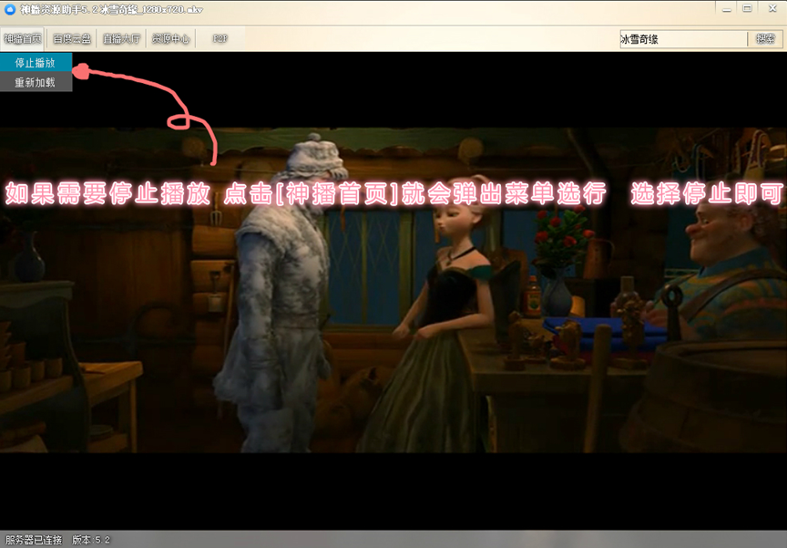 3.在播放过程中如想停止播放 点击[神播靠谱朗驰娱乐体育] 自动弹出菜单选项 选择[停止播放]