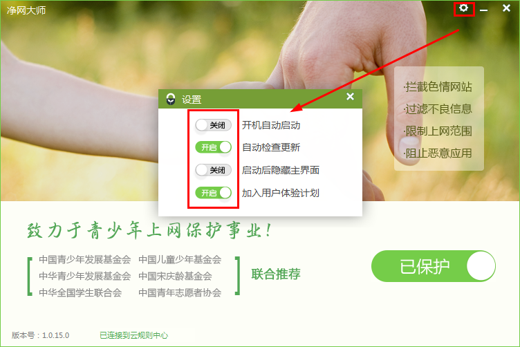 净网大师设置,共有4项供用户选择设置