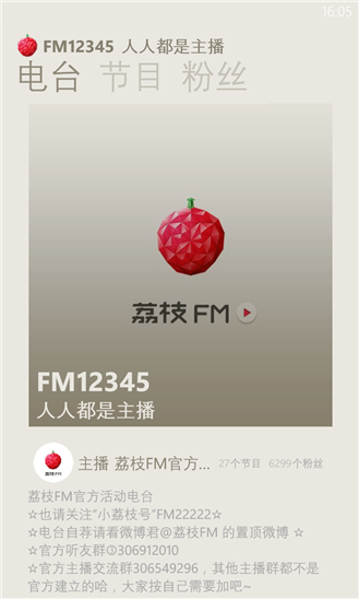 荔枝FM是荔枝FM官方专为Windows Phone用户而开发,适用于Windows Phone 8/8.1系统使用,荔枝FM是一个可以在手机上开设个人电台和录制节目的应用软件,可以收听几十万个有趣的网络电台。