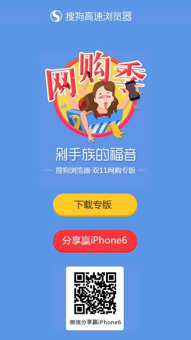 网购季,搜狗浏览器双11网购专版,剁手族的福音!分享即可赢取iPhone6!人人都有机会!