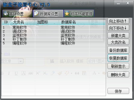 添加程序、刷新图标、新建大类、导入数据、打包数据、改大类名