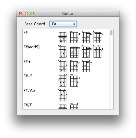 这首歌视图显示当前歌曲与歌词及和弦。点击一个和弦查找和弦的定义。和弦,歌词和标签的字体和颜色可以在首选项进行更改。您也可以快速增大/减小字体大小缩放滑块,或者通过视图 - 缩放菜单。乐曲将根据电流的大小重新格式化。当您选择查看 - 变焦 - 自动缩放,SongBook示范会尽量展现歌曲尽可能大,这样它仍然适合在屏幕上无需滚动。