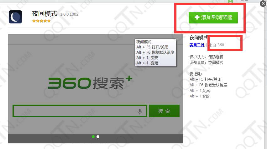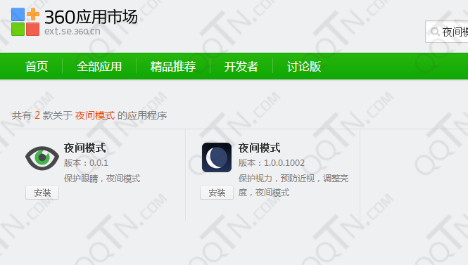 4、以下就是360应用市场提供夜间模式插件,我们选择官方提供的那款