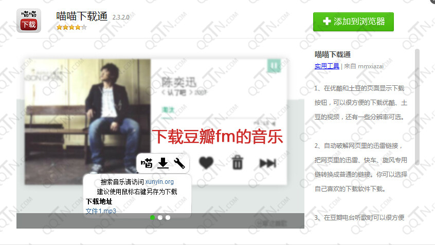1、豆瓣音乐下载:进入豆瓣音乐播放页面,会有一个喵喵下载通下载功能按钮,可以直接点击下载豆瓣fm的音乐