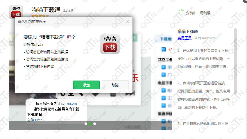 喵喵下载通是一款强大的网页嗅探工具,可以在优酷土豆的视频网站显示下载按钮,无需任何下载工具就能免费下载视频;同时能够网页的迅雷下载链接进行破解转换成普通链接。使用喵喵下载通,可以下载任意网页视频、音乐和链接。