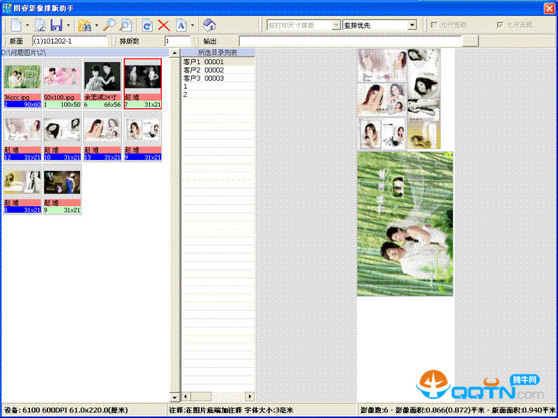 可以随时查找所有尚未被排版的图片,并能自动将这些未排版图片对应的客户主目录导入到本软件特有的历史目录列表中,操作人员直接在这个历史目录列表中任意调取不同客户的图片来拼版。