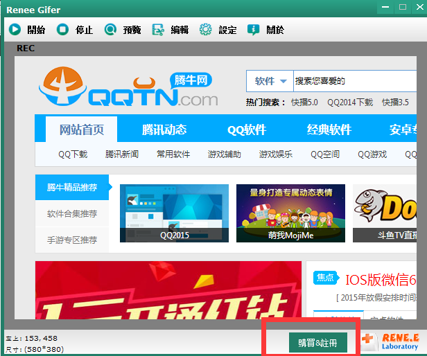 第1步:运行Renee Gifer软体,界面如下,上面是操作按钮区,中间是透明的录制视窗。