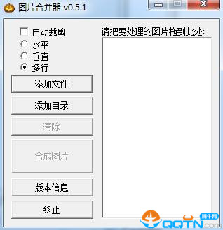 图片拆分器支持图片拖曳,可以直接把要拆分的图片拖到窗口里。三种合并方式都支持自动裁剪,还可以直接添加目录批量合成。