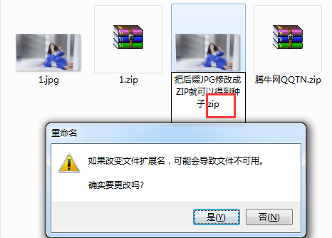 5、然后你将图片格式的后缀改为.zip