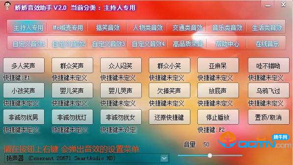 2、自定义音效(MP3等多种音频格式)(音效按键上右键弹出界面设置)