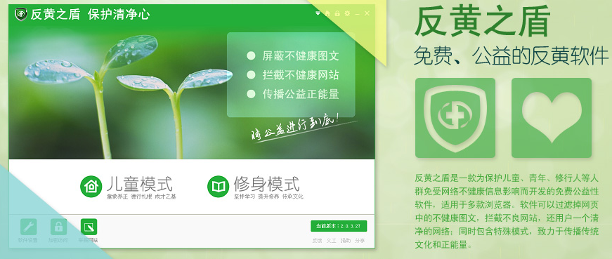 为达到较好保护儿童和青年人不受网络不健康信息影响,反黄之盾通过采用关键字,人工过滤等方法,比较有效的 地屏蔽了网页中的不良图文,帮助用户更好地避免受不健康图文的干扰。