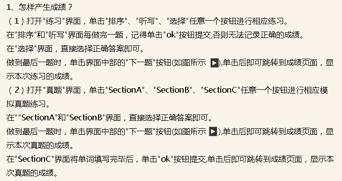 2.易用性,提供声音,原文,答案,解析四位一体的画面,给用户以更好的体验。