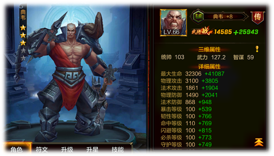 这里大部分属性如其名称一样,比较好理解,其中较少出现的守护等级是指降低武将被暴击伤害后的暴击伤害值。