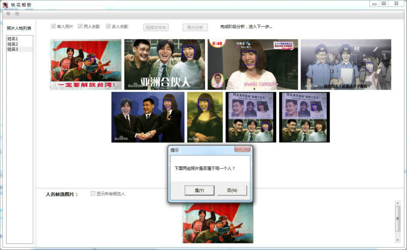 基于业内领先的face++人脸识别免费API,对识别结果进行了复杂的二次处理,只需少量的用户确认操作,即可对电脑上的大量照片实现按人脸分组,可以按条件筛选照片。