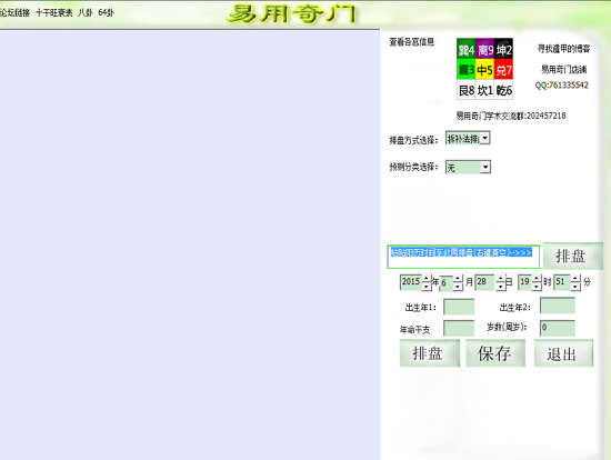 本软件可以进行各种各样古代和现存的大多数奇门流派排盘方法的排盘,具体地: