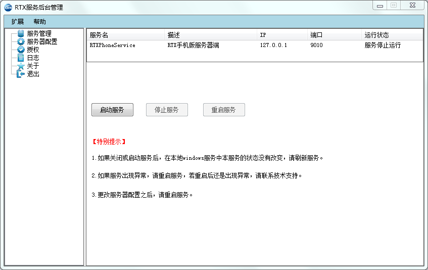 RTX手机插件服务管理器是讯捷即时通RTX手机版的服务器端,设置服务器配置后,启动服务即可实现手机版rtx数据与电脑版数据互通啦。
