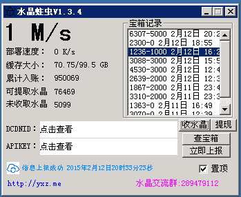 水晶蛀虫可以与水晶客户端配合使用,具备批量快速查看水晶产量、收水晶、以及水晶提现等功能。