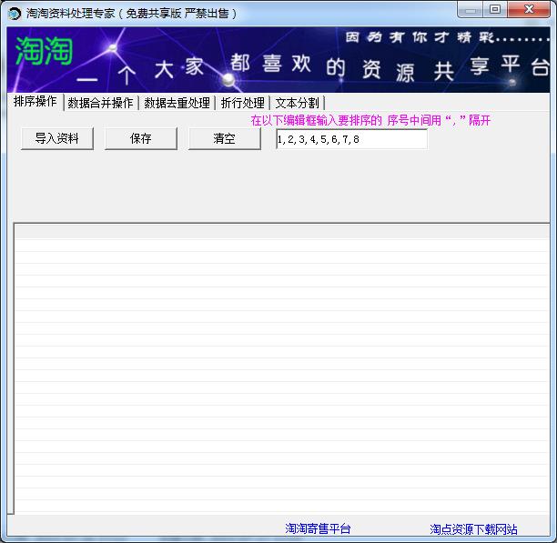 淘淘资料处理专家是一款简单好用的资料管理工具,是你的办公好助手,它具有资料排序、数据合并、文本去重、文本折行、文本分割等特点,是资料处理的好助手,赶快下载使用吧!