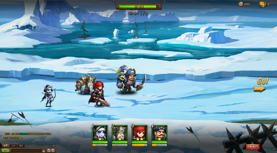 第一波敌人轻松搞定,点击黄圈处进入下一波。