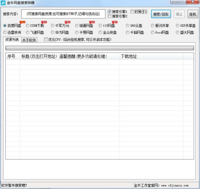 当前位置:靠谱朗驰娱乐体育网络工具网络共享 → 金牛网盘搜索神器 1.0 免费版
