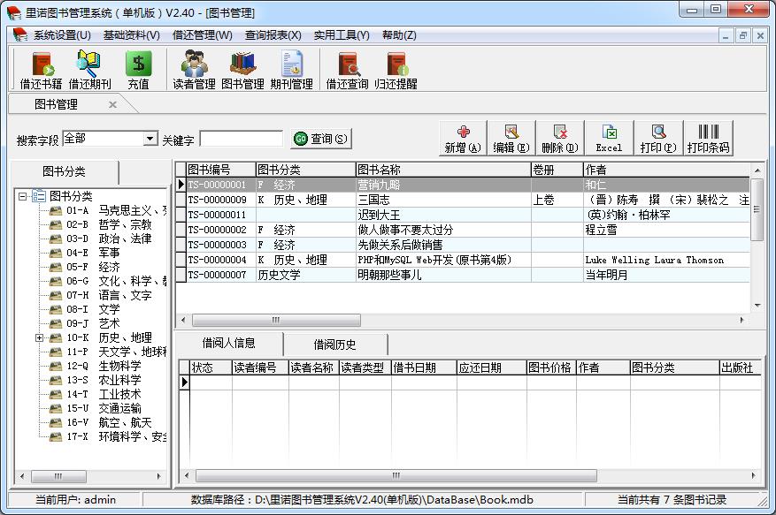 里诺图书管理软件(单机版)v 2.40 更新: