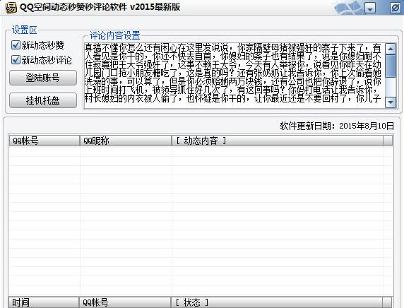 2、登录QQ账号,设置评论内容,选择动态秒赞和秒评论即可操作