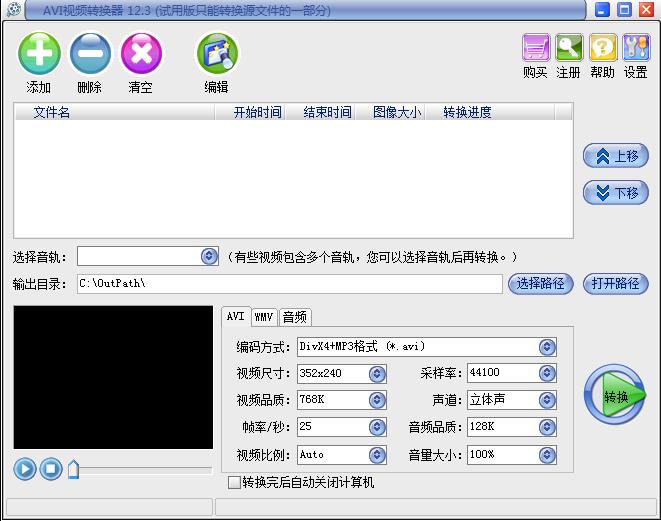 AVI视频转换器是一款功能强大的AVI视频转换工具,它可以帮助您将几乎所有的视频格式,如:RM、RMVB、VOB、DAT、VCD、SVCD、ASF、MOV、QT、MPEG、MPG、WMV、MP4、3GP、M4V、AVI、FLV、MKV、MOD、TOD、MTS、M2TS、TS、F4V、DV等视频格式转换为MP4机、手机或碟机上所支持的AVI视频格式。