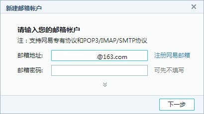 1. 首先输入你常用邮箱的帐号密码,网易邮箱支持P3P3/IMAP/SMTP协议。