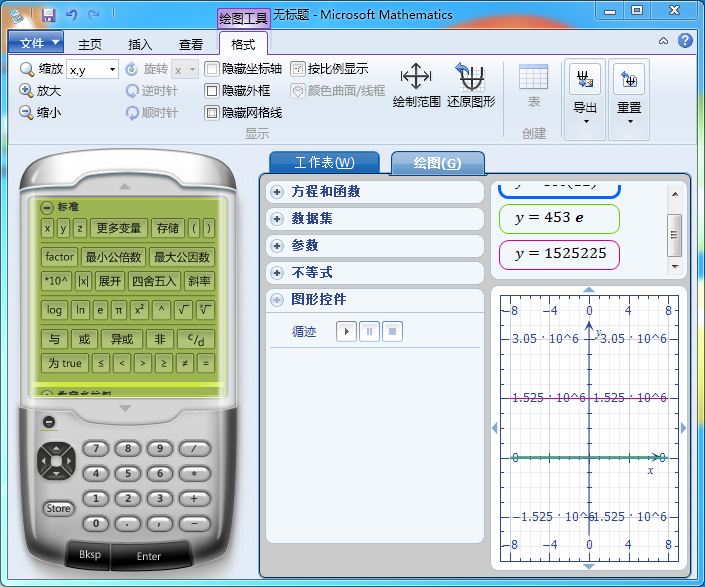 Microsoft Mathematics包括一个功能全面的绘图计算器,该计算器被设计为能像手持计算器一样工作。