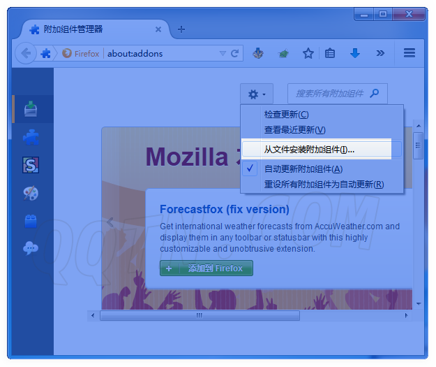 下载 xpi 文件。然后打开火狐浏览器 Mozilla Firefox