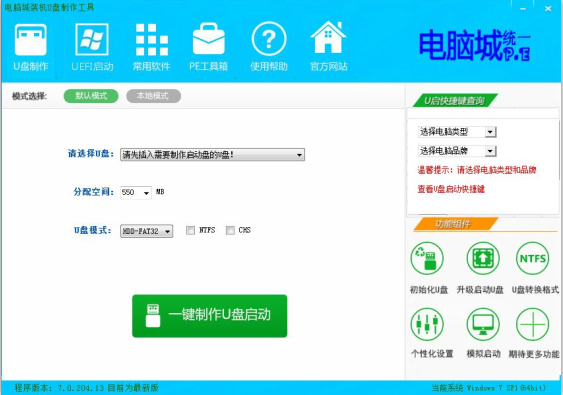 这是一款一键式制作U盘启动软件,操作简单,采用电脑城统一的PE系统,拥有这款软件可以让您也成为一个装机大师。