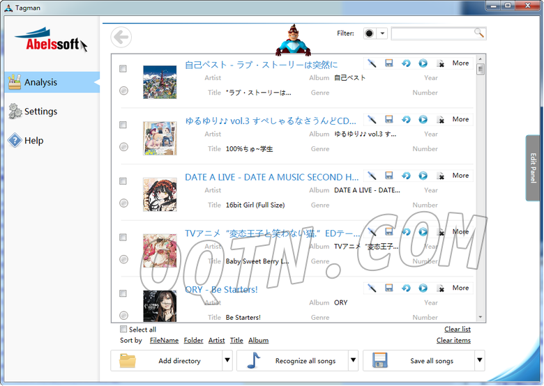 音乐管理软件Abelssoft Tagman是一款音乐管理软件。只需按下一个按钮就能自动整理您的音乐库。添加缺失的标题,艺术家,专辑等到您的MP3文件的ID3标签。创新的指纹识别技术:使用TagMan创新的指纹识别技术在您的收藏创建的每个轨道的指纹,并与一个大的在线数据库进行比较。