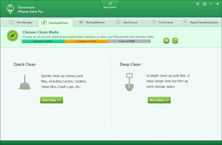 它提供了2种方式来清洁iPhone,iPad和iPod:快速清洁(免费)和深层清洁。