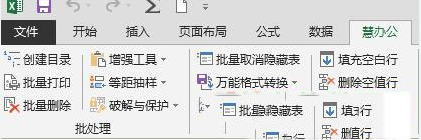1、安装《慧办公》软件后,打开Excel,《慧办公》软件将出现在Excel的功能区,如下图: