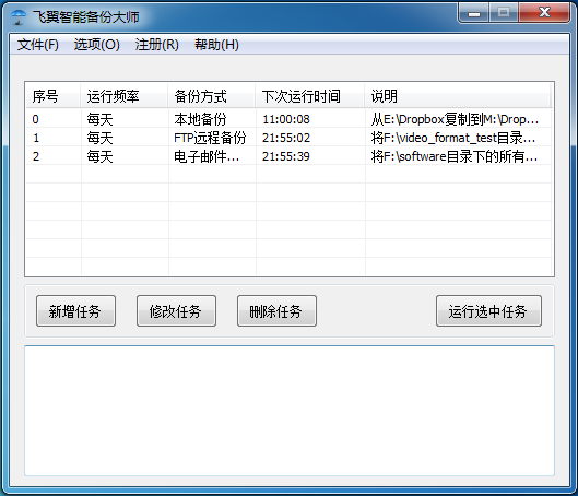 飞翼智能备份大师是一款由金飞翼软件推出的绿色小巧、功能强大的数据备份软件。它可以帮助您将重要文件定期自动备份到移动硬盘、远程FTP服务器和电子邮件。它特有的智能算法能够快速地完成备份,从而大大节省您的备份时间。有需要的朋友快来试试这款飞翼智能备份大师!