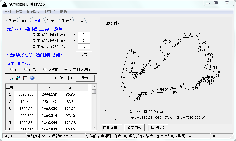 2、这次把软件界面变为可调节大小,这样就可以把绘图区域、坐标表格区域任意调整,方便坐标输入和绘制大图。