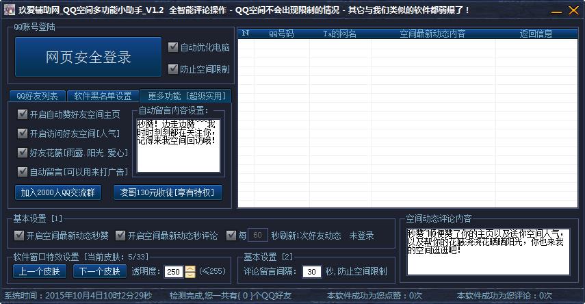 2、自动留言、评论的功能自动限制速度,防止QQ空间被限制评论等操作【其它软件做不到这样】