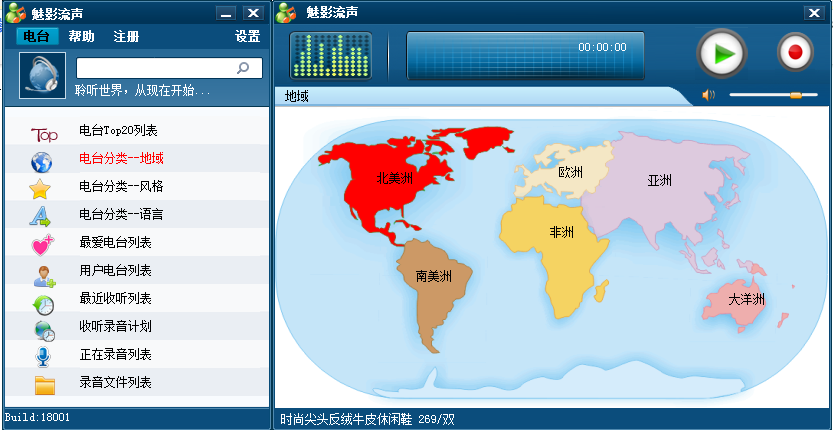 魅影流声全球网络收音机提供了地域、语言和流派分类,